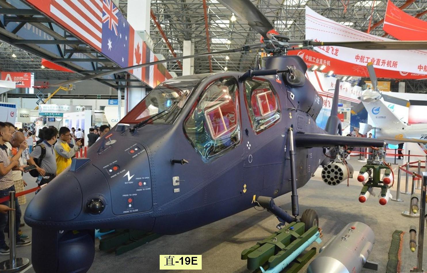 直19武裝直升機與直10同一時間研製列裝,兼具偵察與攻擊的輕型武裝直升機,與直10同為解放軍陸航部隊的超級明星。隨著台灣AH-64E武裝直升機的交付,中國陸航的直-10、直-19武裝直升機改進就成為關注的焦點,對於直-19來說,一個比較重要的改進方面就是要配備毫米波雷達,以縮小與台灣AH-64E的差距。武直-19(代號:黑旋風)是由中航工業哈飛和中航工業直升機設計研究所研製的武裝偵察直升機。武直-19武裝偵察直升機既可以單獨執行戰術偵察任務,也可協同專用武裝直升機作戰,或為地面炮兵提供偵察、校射支援。武裝偵察直升機指偵察專用,兼有一定的空戰或對地攻擊能力,但武器載荷不大(如4至6枚“海爾法”反坦克導彈),最大起飛重量6噸以下,通常為雙人機組或具有一定載員能力的武裝直升機。武直-19直升機由武直-9直升機發展而來,它的價格和生産成本較低,有利於大規模裝備部隊,作為價格昂貴的武直-10武裝攻擊直升機的有力補充,並與武直-10形成“高低搭配”。在武直-10裝備部隊後,武直-19的加入使得中國陸軍航空兵的機種結構得到空前改善,中國陸軍航空兵的作戰能力得到了全面提升和加強。