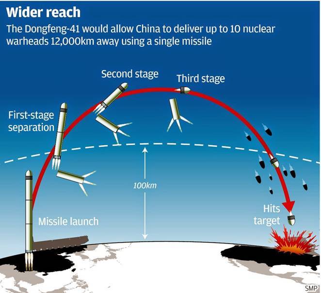 實際上,目前洲際彈道導彈的性能是否先進,不再去單純比拼射程,更非越遠越好,更重要的是多彈頭分導技術、命中精度以及突防能力。目前中國的核投擲手段仍然有限,如果中國真的發展東風-41這樣的機動發射固體燃料洲際彈道導彈,完全沒必要追求所謂世界第一的射程,更應該看重有效載荷和突破潛在對手彈道導彈防禦系統的能力。這名專家認為,中國洲際導彈不可能在發射數分鐘內便被美國反導系統攔截,那時導彈尚處於助推段,而目前美國唯一能攔截洲際導彈的陸基攔截彈只能對導彈中段進行攔截,這套系統無法在數分鐘內完成攔截。