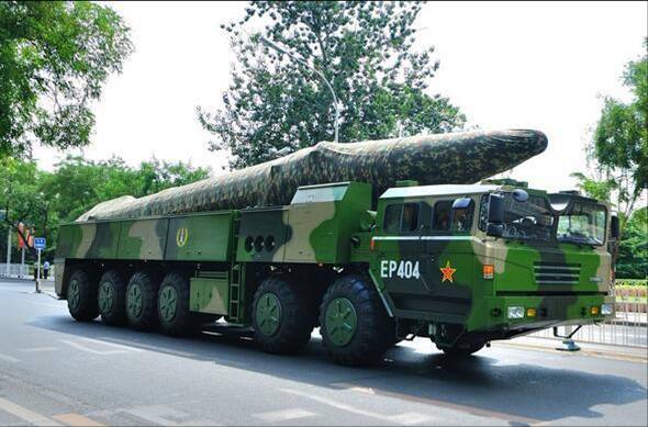東風41洲際彈道飛彈是大規模毀滅性核報復武器(圖1),中國國防科委向航太部第一設計院下達了研製固體燃料多彈頭洲際導彈的命令,東風41於1984年立案,目的是研製一種能打擊美國本土任何一地區的固體燃料洲際導彈(圖2),用來代替東風五液體燃料洲際導彈。東風41於1991年解決固體燃料問題,1994年進行首次高彈道試射成功定型,東風41研製工作歷時十年。東風41同年又進行過計算機模擬的全程試射,打擊美國本土目標,獲得成功。東風41洲際導彈是中國研製的一種先進的多彈頭洲際導彈,固體燃料,兩級結構。東風41能夠攜帶12枚分導式核彈頭,最大射程超過1萬4千公里。東風41洲際導彈採用公路機動平臺(圖3),鐵路機動平臺和加固地井發射三種方式部署,其中公路機動平臺為陜西特種汽車製造廠生產的sx-4320重型牽引車, 集儲存-運輸-發射一體化三用拖車,導彈置於拖車的彈艙內,在運輸狀態下呈封閉狀態,拖車裝有兩扇對折艙門,發射前艙門開啟,導彈透過液壓裝置起豎發射。嚴格地講,東風41在設計上可以理解成東風31的放大,推進劑:三級固體燃料,射程:14000公里,彈長: