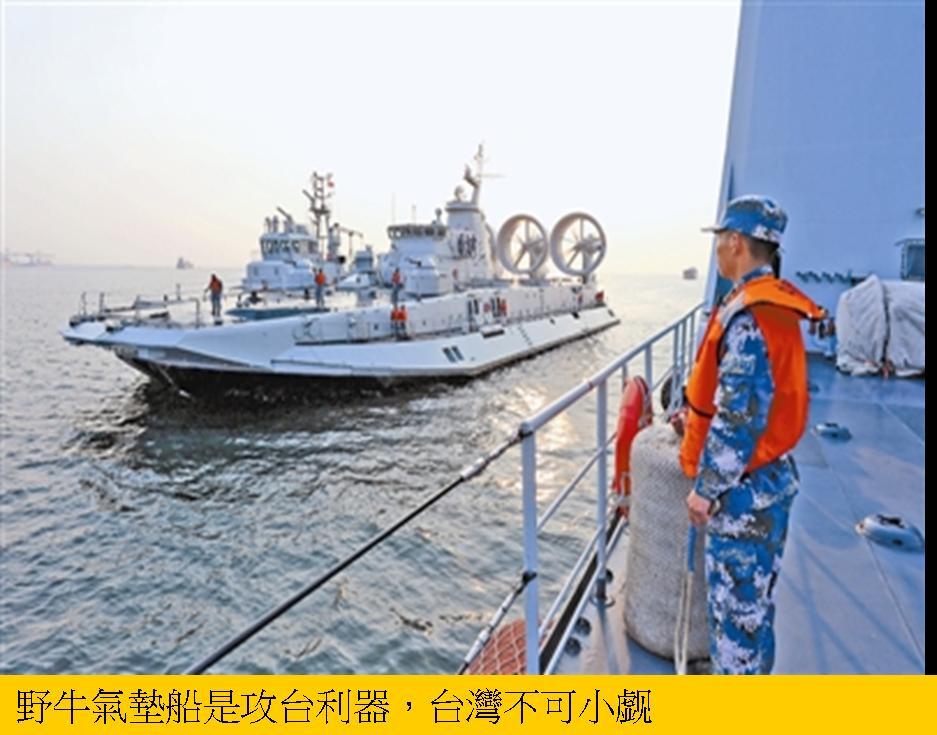 與美國等國的氣墊登陸艦相比,“歐洲野牛”可謂全副武裝。強大的火力意味著,除了完成軍隊和作戰物資的登陸任務,“歐洲野牛”還可在近海提供火力支持。國防分析人士推測,這種氣墊登陸艦當下緊迫的問題是用在南海。當然不可諱言,中國大陸量產歐洲野牛後是一種攻台利器,目前台灣空軍已喪失海峽制空權,歐洲野牛一艘即可載運一營兵力,若30艘野牛狂奔於台海則攻台易如反掌,所以戰略上台灣要買潛水艇及搶奪制空權的高性能防空飛彈及戰機,偏偏美國不售這些有用的武器!在520前夕,中國大陸用野牛氣墊船演習是一種恐嚇台灣的具體行動,希望蔡英文團隊不要漠視。