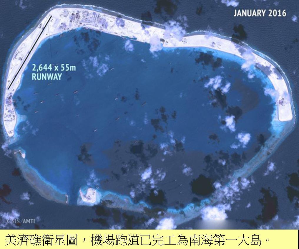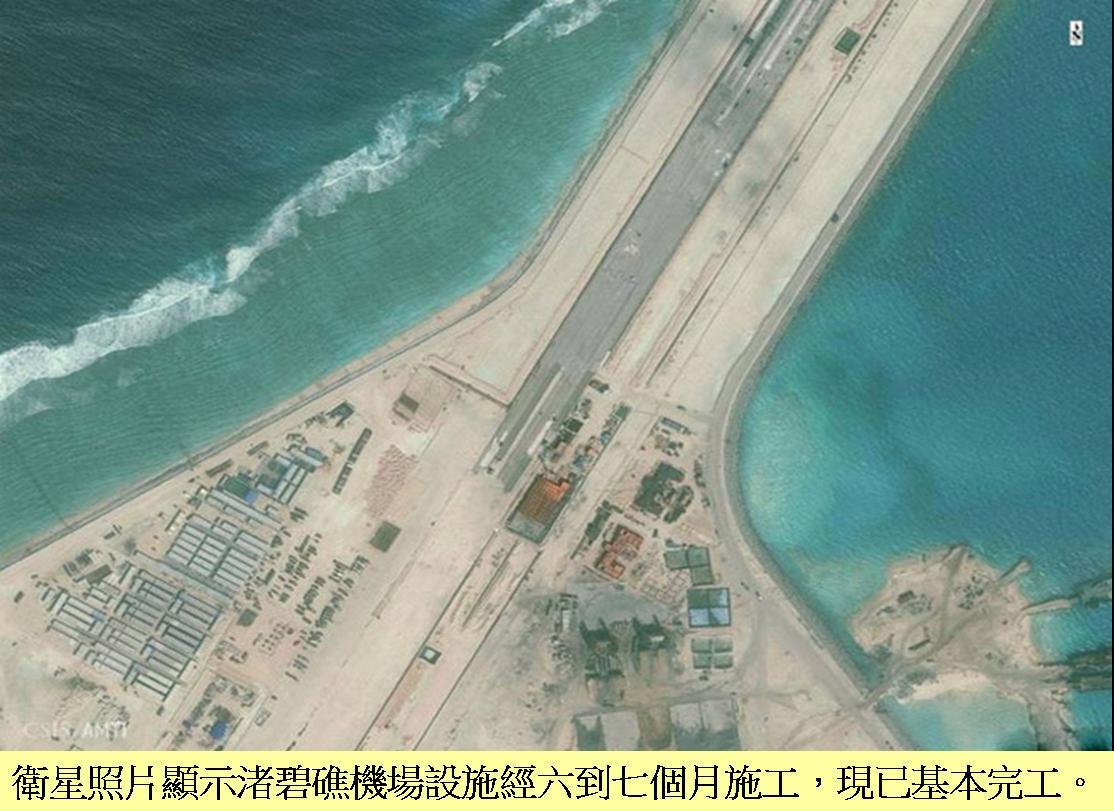 衛星照片顯示渚碧礁機場設施經過六到七個月施工,現在已基本完工。