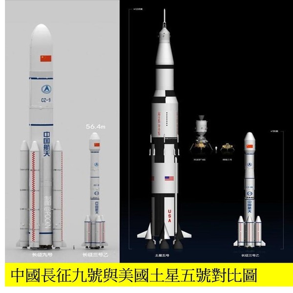 長征九號是中國航天科技集團自行研製中的巨型登月火箭[,主要任務是負責中國載人登月、火星科考取樣返回、太陽系外圈行星探測等多種高難度任務。2016年,長征九號完成深度論證,預計在2030年前首次發射。或於2027年至2028年首飛。其近地軌道運載能力至少100噸,月球轉移軌道運載能力至少50噸,與美國土星五號登月火箭運力相近。根據長征三號總設計師透露,2025年至2030年之間,發射長征九號火箭,起飛推力3000噸級,110米長,能把120噸的航空器送入太空,這將能把3至5人送到月球。