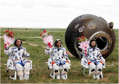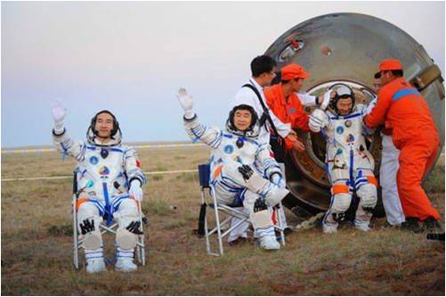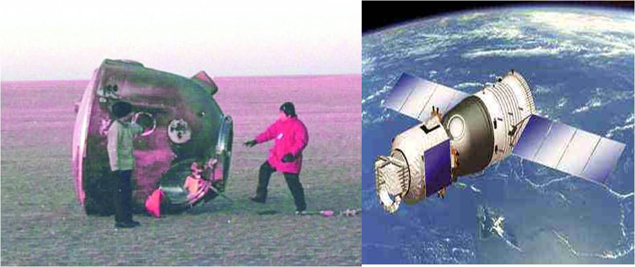 飛船上搭載了一個模擬太空人,此外神舟三號上還搭載有多個實驗裝置以及植物的種子等。2002年4月1日,神舟三號飛船在太空繞地球飛行107圈後,準確降落在內蒙古中部的著陸場。神舟四號載人飛船是「神舟」號系列飛船之一,是中國第三艘正樣無人飛船,除了沒有搭載人以外,其技術狀態與載人飛船完全一樣。飛船由推進艙、返回艙、軌道艙和附加段組成。總長約7.4米,最大直徑2.8米,總質量7794公斤。神舟四號飛船於北京時間2002年12月30日0時40分在酒泉太空發射場由長征二號F火箭發射升空,飛船按照預定計劃在太空飛行了6天零18小時,飛船在環繞地球飛行了108圈後,於北京時間2003年1月5日19時16分,準確降落在內蒙古中部地區的著陸場。神舟四號進一步改善,完全照載人太空設計製造,飛船的返回艙增加了兩個座椅,坐著兩個模擬太空員,在太空中實施展開太陽能帆板、調姿等動作,還成功實施變軌。同時,生命保障分系統、飛船環境控制分系統、載人太空應用分系統、太空員分系統都全面進行了試驗。此外,神舟四號飛船還有多項實驗項目,共有8項科學研究在飛船上展開,有55件配載物。2003年10月15日「神舟五號」飛船載著中國第一位宇航員楊利偉在酒泉太空發射中心用長征二號F型運載火箭發射升空,飛船在太空繞地球飛行14圈後,返回艙於2003年10月16日內蒙古成功著陸。2005年10月12日「神舟六號」飛船載著兩位中國宇航員費俊龍和聶海勝發射升空,飛船上新增加了40餘台設備和6個軟體,使飛船的設備達到600餘台,軟體82個,元器件10萬餘件,做出110項技術改進。食品櫃得到真正使用,通過水箱和單獨的軟包裝兩種方式準備了太空員用水。擴大了冷凝水箱,把所有裸露管線都貼上了吸水材料,確保飛船相對濕度控制在80%以下。軌道艙功能使用方面的改進:放置了食品加熱裝置和餐具等。軌道艙中掛有一個睡袋,供兩名太空員輪流休息用。軌道艙中還有一個專門的清潔用品櫃,太空員可以用裡面的溫巾等物品進行清潔。大小便收集裝置這次也是首次使用。持續性改進:「黑匣子」不僅存儲量比原來大了100倍,而且數據的寫入和讀出速度也提高了10倍以上,體積卻不到原來的一半。2008年9月25日21時神舟七號載著翟志剛,劉伯明,和景海鵬在酒泉衛星發射中心發射升空,2008年9月27日,景海鵬留守返回艙,另外兩人分別穿著中國製造的「飛天」艙外太空服和俄羅斯出品的「海鷹」艙外太空服進入神舟七號載人飛船兼任氣閘艙的軌道艙,實現了中國歷史上第一次的太空漫步,神舟七號飛船共計飛行2天20小時27分鐘。2011年9月29日中國首個太空實驗艙天宮一號在酒泉衛星發射中心發射升空,2011年11月1日05時58分10秒,神舟八號無人衛星在酒泉衛星發射中心發射升空,屬於為空間站作對接準備的無人目標飛行器,神舟八號與天宮一號自動對接,組成一座小型的「空間實驗室」。間隔12天後脫離天宮一號,與其進行第二次交會對接。最後再次脫離天宮一號,返回艙返回地球。神舟八號艙內儲有歐洲太空總署以德國航空太空中心及德國霍恩海姆大學「SIMBOX」為主的擬微重力生物試驗盒。在神舟八號上,開展了中德合作空間生命科學實驗,中德雙方共17個生命科學實驗項目參加了合作頗為成功。神舟九號於2012年6月16日由長征2F遙九火箭送入太空,飛船搭載兩名男太空員景海鵬、劉旺以及一名女太空員劉洋,將與天宮一號進行兩次對接,其中一次為手動對接。神舟十號於2013年6月11日17時38分,由長征2號F改進型運載火箭發射,搭載太空員聶海勝、張曉光和女太空員王亞平。