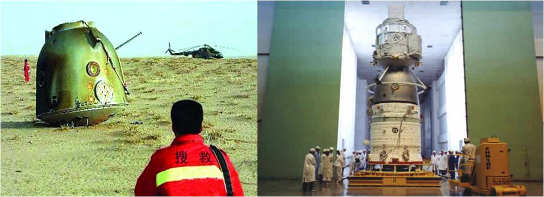 1956年10月8日,中國大陸組建了國防部第五研究院,由錢學森擔任院長,其職責是攻克遠程飛彈的技術難關。1960年11月5日,中國自製的第一枚飛彈「P-2」發射成功,1970年4月24日,中國第一顆人造地球衛星東方紅一號在酒泉衛星發射場發射成功,使中國成為世界上第五個發射衛星的國家。1975年11月26日,中國首顆FSW-0返回式地球衛星發射成功,3天後順利返回,使中國成為世界上第三個掌握衛星返回技術的國家。1982年10月12日,潛艇水下發射運載火箭獲得成功,回收艙準確地濺落在預定海域。1990年4月7日,中國利用「長征三號」運載火箭在西昌衛星發射中心,把美國製造的亞洲1號通信衛星送入預定的軌道,首次取得了為國外用戶發射衛星的成功。1992年,中國神舟號飛船載人太空工程列入國家計劃進行研製。1999年11月20日,中國第一艘無人試驗飛船「神舟一號」試驗飛船在酒泉發射成功,21小時後在內蒙古中部回收場成功著陸,神舟二號是中國發射的第二艘實驗飛船,也是中國第一艘正樣無人太空飛船,飛船的技術狀態與載人飛船基本一致,由推進艙、返回艙、軌道艙三部分組成。神舟二號飛船於北京時間2001年1月10日在酒泉太空發射中心發射升空,飛行期間各種試驗儀器設備性能穩定,工作正常,採集了大量寶貴的飛行試驗數據。此時飛行,還首次在飛船上進行了微重力環境下的空間生命科學、空間材料、空間天文和物理等多領域的科學實驗。1月16日神舟二號飛船在內蒙古成功著陸。飛船在太空中運行七天繞地球飛行117圈。神舟二號的長征二號F火箭因為一個操作失誤,於發射前十天在工作平台撞上火箭,導致火箭出現一個小坑。神舟三號飛船是中國發射的第三艘無人實驗飛船,飛船上除了沒搭載太空員之外,其技術狀態與載人狀態完全一致。飛船由推進艙、返回艙和軌道艙組成。飛船是在北京時間2002年3月25日在酒泉衛星發射中心成功發射,