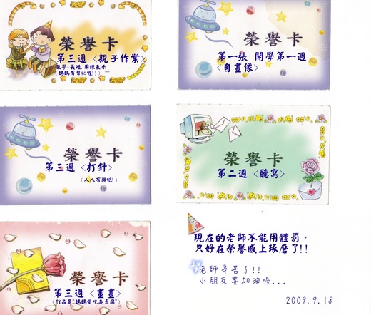 一張張的榮譽卡,不知道嗎媽心裡多高興,可惜無動於衷的妳,