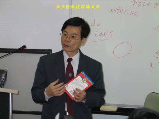 關於翻譯,蘇教授表示,許多人很注意文法問題,但是,卻忽略了其他重要的細節,導致譯文錯誤百出或是貽笑大方。例如:台灣的轎車常常貼有「Baby in car」的標誌,表示這是適合嬰幼兒乘坐的車,但是這個標語在英語系國家,卻會讓車主被處以罰鍰,因為在英語系國家,這個標語表示「車主將未成年嬰幼兒單獨留在車內」!經過蘇教授的講解之後,與會學生才發現,原來許多我們不以為意的錯誤英文,其實卻是造成英語系國家的native speakers 誤解我們的原因。對此,蘇教授認為,我們學習英文時,除了文法之外,應該要注意字的用法與邏輯,因為許多時候,文法雖然對了,但是卻不合邏輯或是誤用字意,導致譯文發生錯誤。