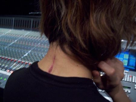 手術後傷口約5釐米長,而且有些紅腫,術後僅一個半月的時間,