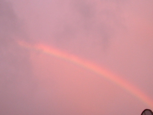 停了,往窗外一看,老天爺倒送了一份驚喜的禮物,一道亮麗的虹掛在天際,好似在與我對