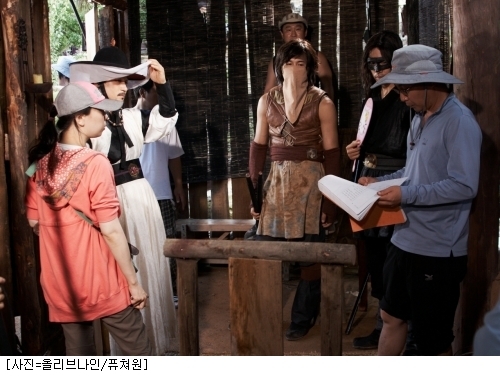 像蒸汽浴室一樣的拍攝場,主演和工作人員70多名為了拍攝在叢林中追逐的場面,匆忙的行動著。一部分工作人員因為天氣太熱,只有脫掉衣服才能集中拍攝。