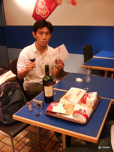 當我們在把酒言歡時,KFC 的服務人員就跑來說,先生我們這裡規定不能喝酒!