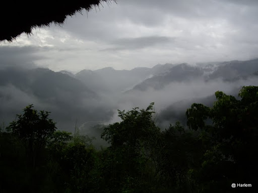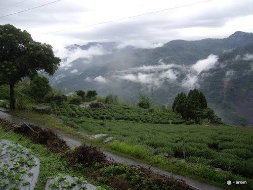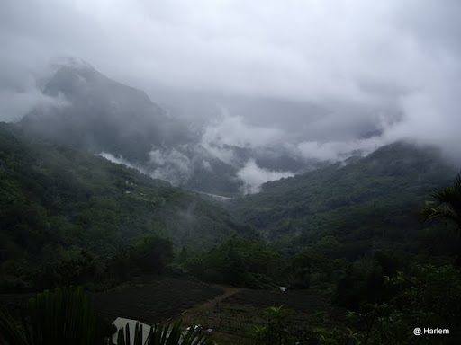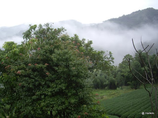 在 "阿將的家" 圍牆往外望出去的景色,迷漫著山嵐(山中的霧氣謂之嵐)以及另一側是菜園。