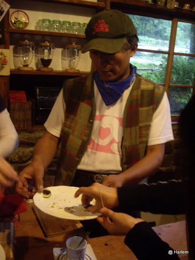 由於一直下不停的雨勢,我們就完全取消了採茶。時間快到中午時就直接到「游芭絲」去用餐了,我的相機又不爭氣地剩一格電力了!