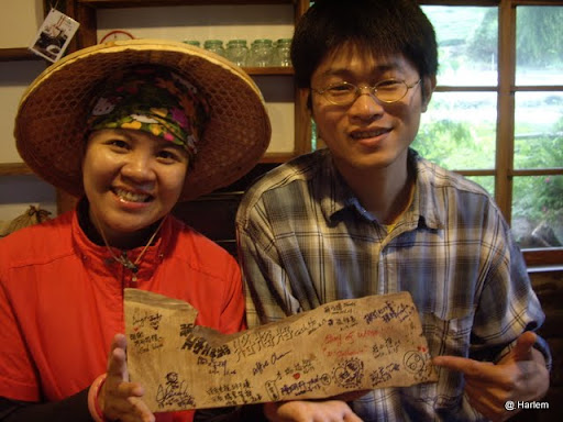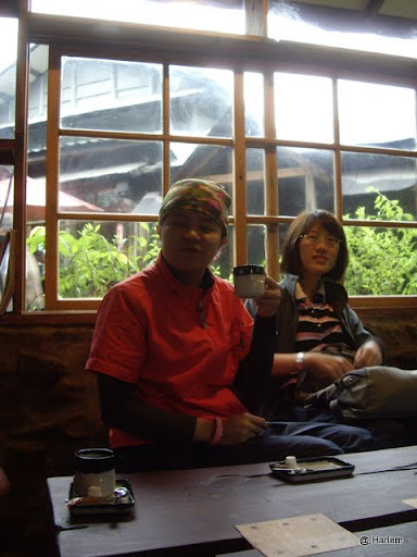 因為是各自回去,所以.....我們這一組(車)的,可以說全台灣最愛吃的,從台北一下來阿里山時,阿其姐就一直在說奮起湖的芋粿有多好吃,而且她還身負重任,要帶多少量回去,所以即使是大雨,即使Cash大哥的車撞到了,都還是要去買呀!但是Cash大哥身負的重任是要買一堆茶及新鮮的青茶葉回去,所以我們這車又回到茶廠找汪班長報到!