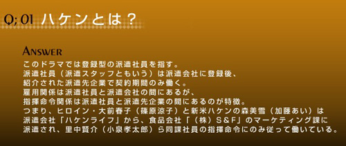這部戲劇所描述的是關於登錄型的派遣社員。