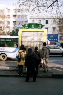 的公車站牌,民眾在此等候公車,公車路線很多,班次密集,相當方便.
