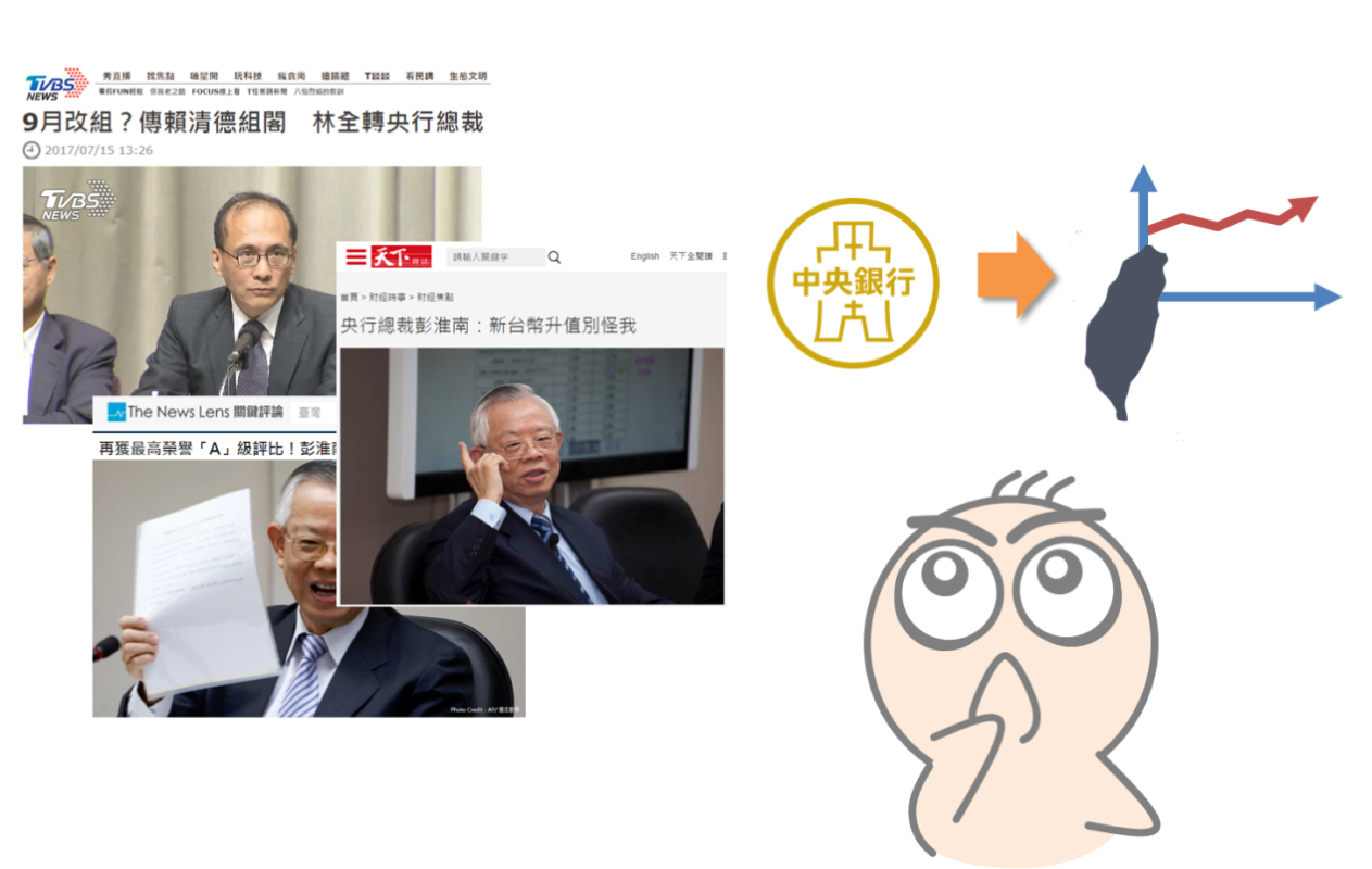 「傳賴清德組閣、林全接任央行總裁」、「全球央行總裁評比13A總裁彭淮南全球第一人」、「央行總裁彭淮南:新台幣升值別怪我」...。對於主修企管、經濟、財經科系,或已投身於金融行業、投資市場中的夥伴而言,一定不陌生央行這個單位。在臺灣整體經濟方面,有時候央行的作為比其他各級政府機關更具影響力,畢竟它的一言一行、一舉一動,都足以影響整體市場的投資氛圍。