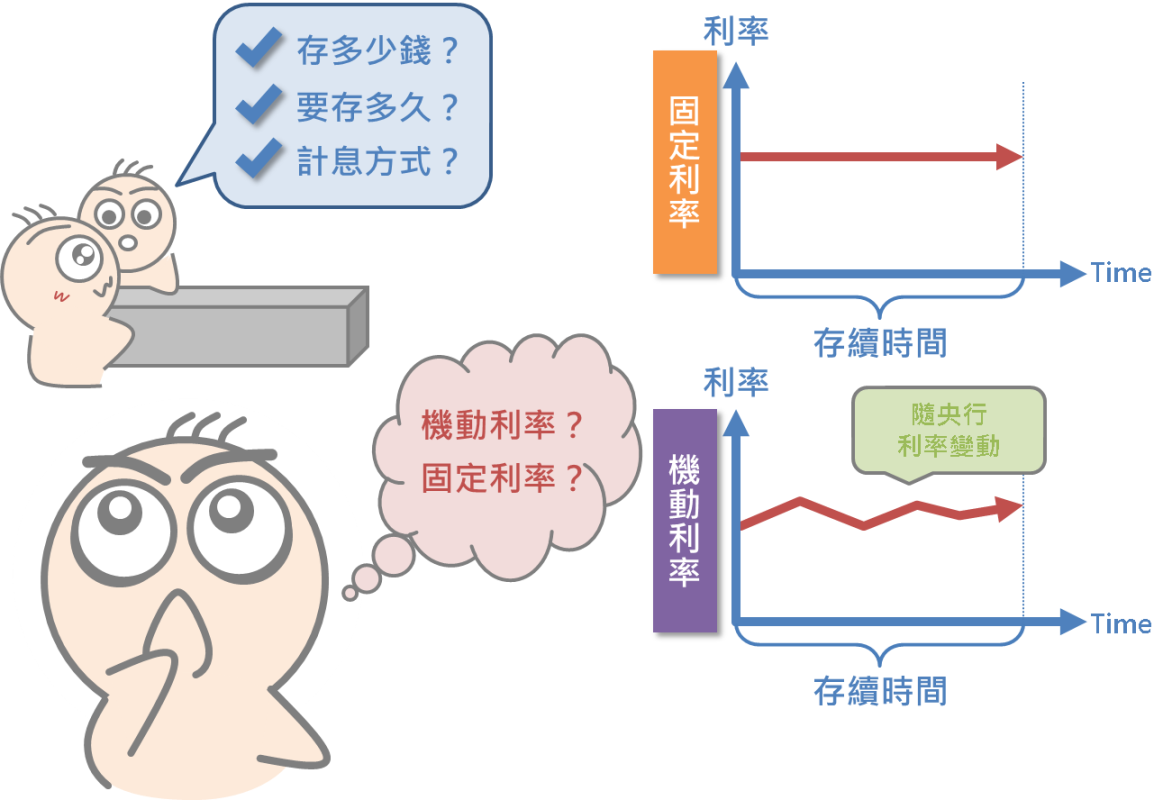 曾經有辦過定存業務的投資夥伴都知道,辦理時除了決定金額、存續期間之外,選擇利率的遊戲規則,也是影響後續獲利多寡的關鍵因素,意即選擇「機動利率」或「固定利率」。
