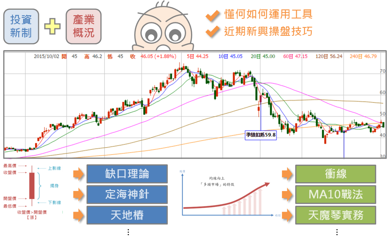 回首思考當初媽媽說的:「書有念完的喔?」,確實投資這門學問包山包海且日新月異,雖然說吸收新知是投資人的基本功,不過對於許多上班族而言,平時下班還得蒐集相關投資資訊並不是件輕鬆的事情,更何況現在媒體管道相當多元、資訊亦非常雜亂無章,如果想要讓自己資訊不斷更新,或許交由專業人士協助彙整會來得有效率,甚至有些坊間老師還能夠以輕鬆活潑或實際應用的方式結合呈現,不僅讓投資夥伴能夠吸收新知,也能同步與實際操盤相結合囉!