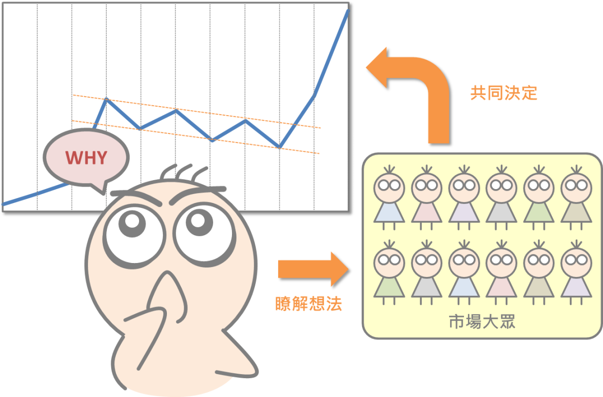 認識完旗形的基本樣貌之後,接著來思考:為什麼會產生旗形走勢?一般而言股價變化是由持股投資人(包含大戶與散戶)共同決定的,所以要瞭解這樣一個歷程,就必須考量其他投資人的想法。