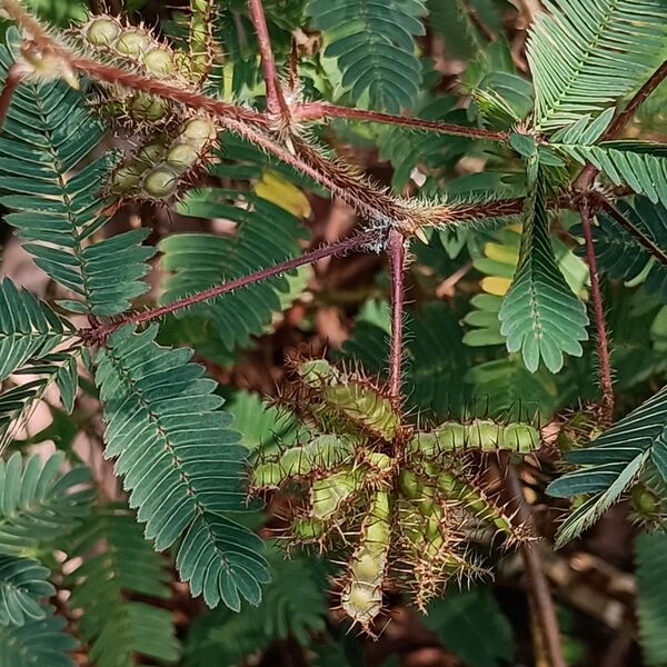 莢果扁平彎曲,長約 1.4 公分,先端有喙,有 3~4 節,每節有 1 顆種子,莢緣波狀,具刺毛,成熟時莢節脫落。種子闊卵形。果期 4~11 月。(以上資料摘自http://kplant.biodiv.tw/)