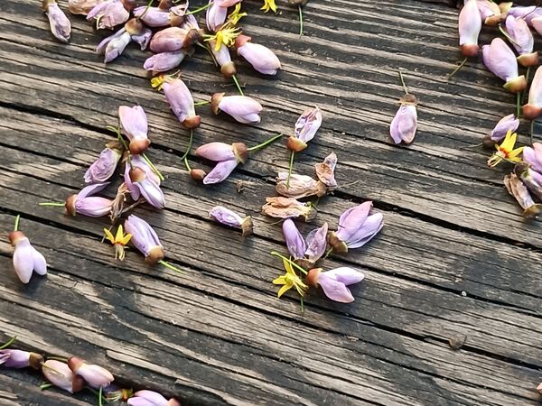 水黃皮開花了。奇妙的是,滿地落滿花苞,就像是披著一條水黃皮花苞地毯。花苞掉這麼多,竟然還可以茂盛的開著花,植物的奧妙,真令人讚嘆。