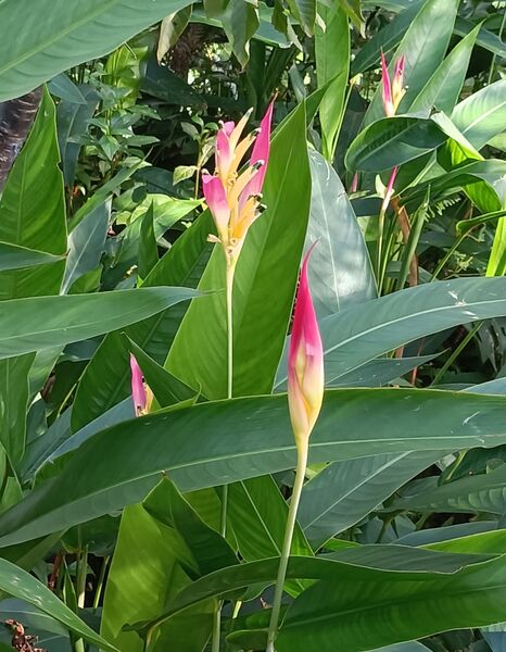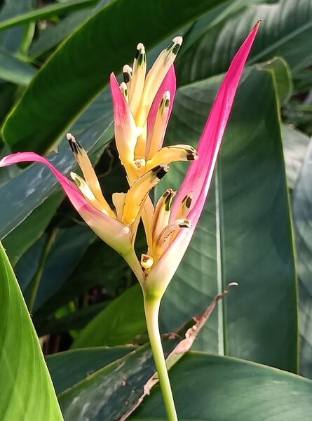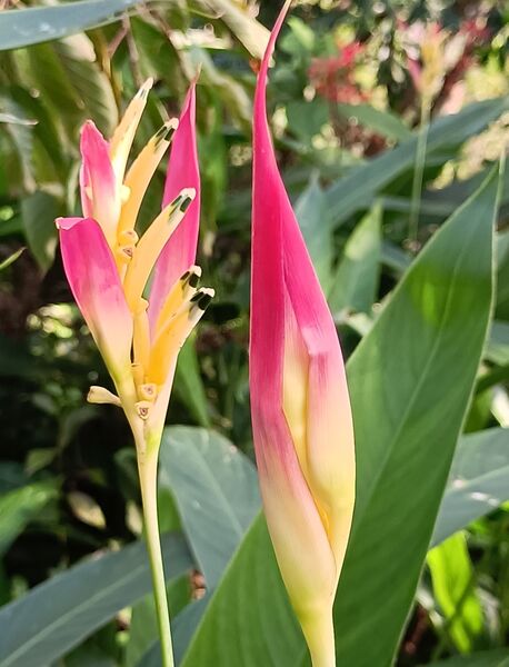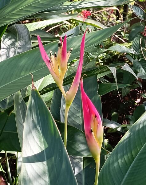 今天要介紹的蠍尾蕉,就是種在台北郊山山徑涼亭旁,現在正開花中。經查資料,似乎它的名字是紅鳥蕉,是蠍尾蕉屬。不過我還是比較喜歡稱它“蠍尾蕉”。