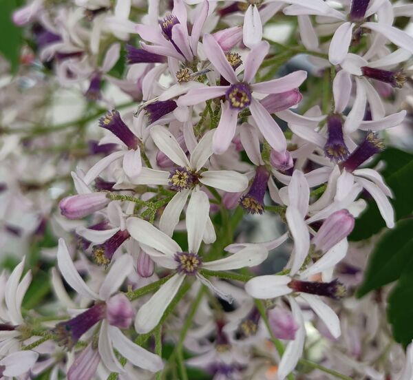 苦楝常見,開花滿樹冠,滿滿的淡紫色也可以引人注意。但因樹幹高大,多年來,對它的花總是遠觀,只感覺到淡紫色,從沒見過它的模樣。