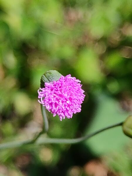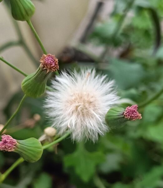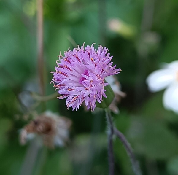 那天看到一株長著絨毛的雜草,葉基琴狀羽裂,乍看以為是纓絨花(纓絨花及粉黃纓絨花都是菊科紫背草屬),後發現葉背是紫色的,這就毫無懸念,它就是紫背草了。