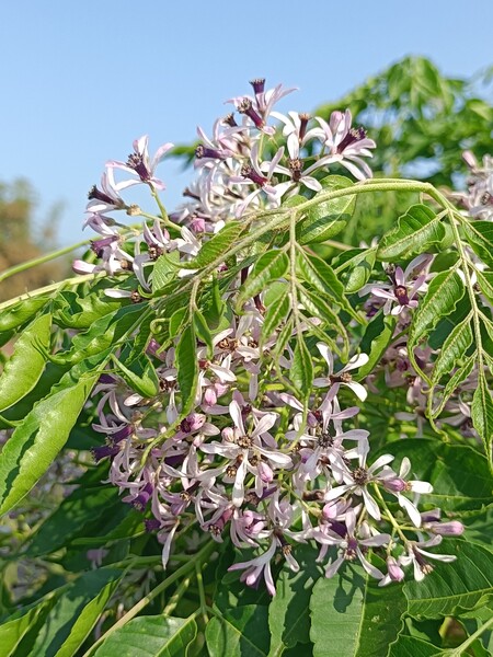 花:花多數,淡紫色,屬圓錐花序;雄蕊筒紫黑色,與花瓣同長;花蕊 10,子房著生於短的花盤上,春天開花;花具香味。