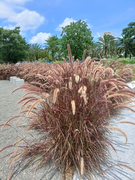 台灣旅行趣 06月20日00:00“藍天×金雨×狼尾草!葫蘆墩公園阿勃勒一枝獨秀美到發光! ” 一文提到台中的葫蘆墩公園種有紫葉狼尾草,而湊巧的是,近日我也在某處公園看到種有一大片的狼尾草,令我驚訝的是,什麼時候狼尾草也躋身公園刻意種植的觀賞植物了?