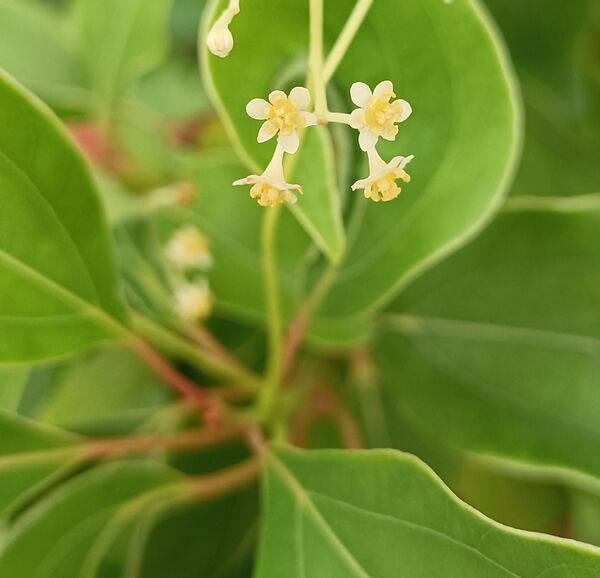 2~4月開花,綠白色,又小又多。核果球形,熟時黑色。
