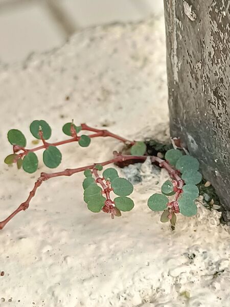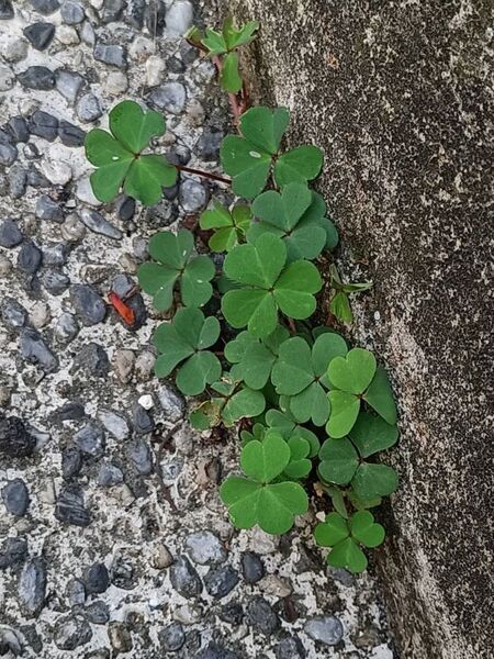 講得太嚴肅了,其實只是要介紹壁縫牆腳,那種看似沒土的地方的植物。一般植物需要水、土、陽光,在沒土的地方幾乎不可能存活。但在壁縫牆腳看似沒土的地方,卻不時可以看到一些植物生長著,也許是壁縫牆腳偶而吹進或流進的細土滋育它們的生命,這種強勁生命力,令人佩服。