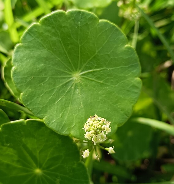 繖形花科天胡荽屬。別名:香菇草、圓幣草、錢幣草。多年生挺水性水生草本。