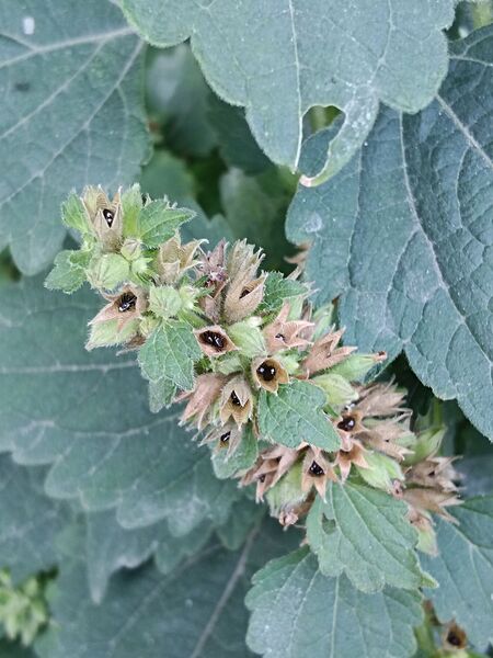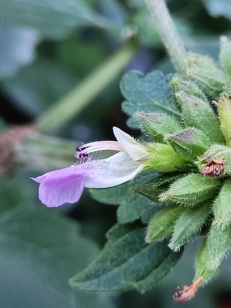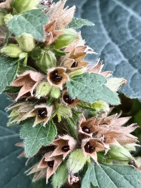沒想到時隔三年後的兩個禮拜前,在一個偶而會去的量販店附近的社區民宅前,竟然看到花盆內種有一棵正在開花的植物,漂亮的花朵看起來似曾相識,腦海中突然想到“廣防風”這個名字,再以植物辨識軟體比對,果然這就是久違了的廣防風。而這次的再邂逅,因為是有人種植照顧的植裁,不但長得枝株茂盛生氣盎然,美麗的花朵不斷開著,時隔兩週再去探訪時,竟然在殘存的花萼中看到它黑亮亮的小巧圓果,真是幸運。