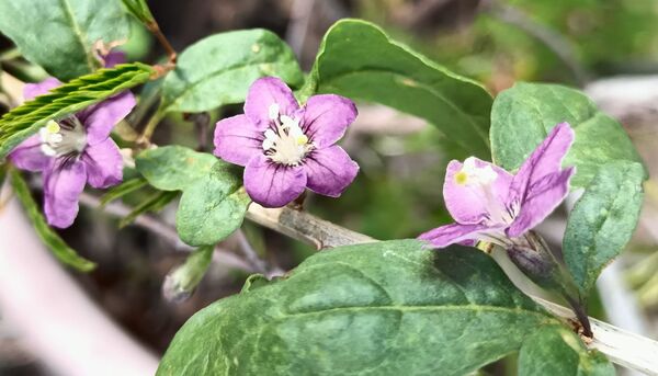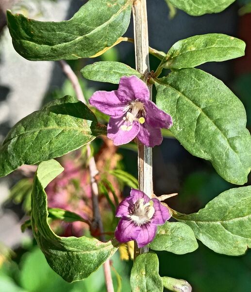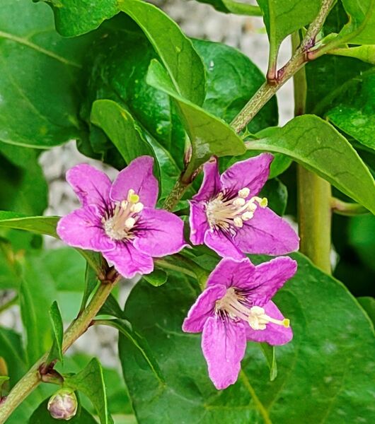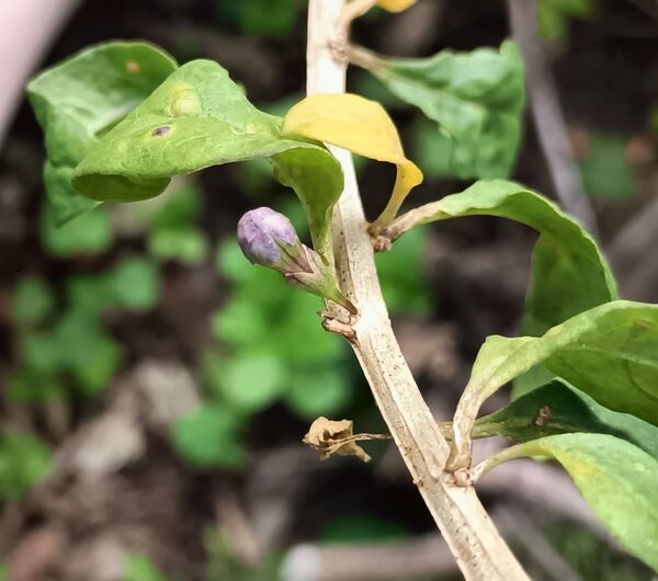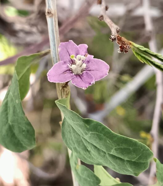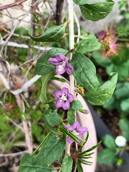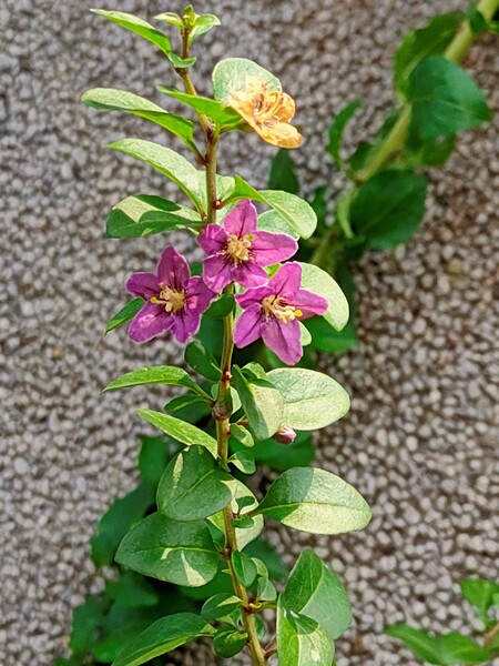 就這樣時光飛馳,一直到最近再度經過該民宅較靠近馬路的另一邊圍牆時,那似曾相識的植栽及漂亮的紫色花朵又出現在眼前,經由植物辨識軟體告知是“枸杞”時,幾年前的那個期待又回到心田裡,真的很想見到新鮮的枸杞果實,於是再度經歷幾個禮拜的刻意觀察,依舊是只看到花苞及花朵,花朵謝了之後,都像船過水無痕般的什麼都沒有了。這次再見到枸杞,花朵少了,變小了,是因為殘株,還是近日的天氣冷濕少有枸杞喜歡的陽光呢。
