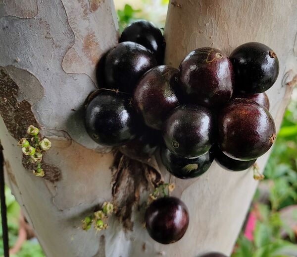 樹葡萄(嘉寶果)---開花結果在樹幹枝條上 葡萄是果實風味甜美的市售水果,串串紫黑色的葡萄令人垂涎欲滴,在眾多水果中一直占有一席之地。樹葡萄名字中雖也有葡萄兩字,但果實卻不是成串的,而是一顆一顆長在樹...