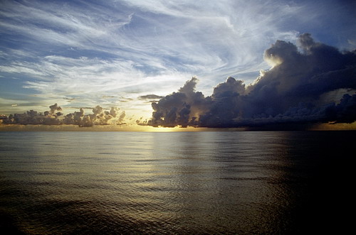 左舷外,一條鬼頭刀拍起浪花忽忽躍起水面;牠在空中扭腰挺身,然後像一把飛刀斬落海面。一聲脆響,如打破鏡面般擾動了心情。感覺手心出汗。深重的喘了口氣,我安慰自己:「那不是旗魚,那不是旗魚,漁季已經結束了。」