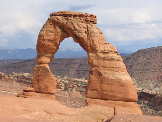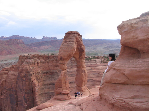 別緊張,下巴沒真脫臼,只是個形容詞。雖然已經看過許多相片,當我站在Delicate Arch(玲瓏拱---翻譯名詞太多種,取用Discovery Channel 知性之旅叢書的譯名)下面時,唉!仍然是震撼無比,世間怎有如此景觀?大自然造物何其神妙。旅遊目的即在於此,非經親眼所見,怎能信服。