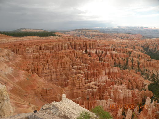 離開了科羅拉多高原,酷熱消失大半,愈接近布萊斯峽谷區域愈見綠意,雖未成大片森林,景觀已是不同。氣溫下降至較為舒適的26-28度(華氏79-83度),豔陽也被些許薄雲給遮了,呵!舒服。昨日午後到達時,車潮洶湧令人訝異,公園入口前的Best Western連鎖旅館規模大得有點奇怪,記得國家公園的建設都相當低調,為了保持原始氣息,固然這旅館是蓋在私人土地上,合法,但總有一些突兀的感覺。