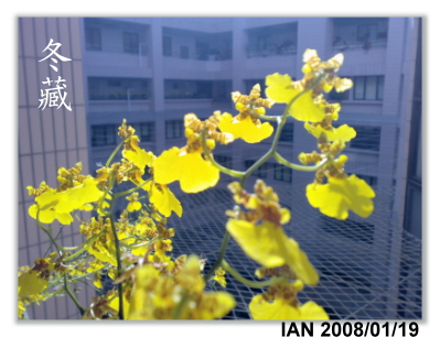 環繞著系所陽台的花圃上,開滿了一朵朵鮮黃的小花,搞不清楚的花名、卻非常令人激賞;透著冬藏的午後陽光,烙印在長廊上,一朵朵、黃裡透光的精采;冬藏的午後,春天、已經不遠。
