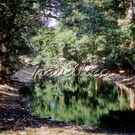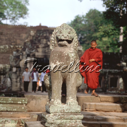 這是一個以石獅子為主體的畫面,由於斑締卡黛座西朝東,石獅子位於東入口,在其後方的平台上為兩側樹蔭所遮蔽,如果過早前往,陽光將直接照射到台階後方的平台以及入口的塔樓,如此畫面將顯得平淡而缺乏層次和立體感。