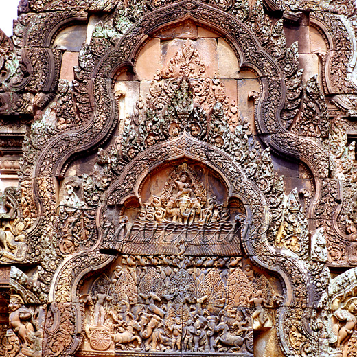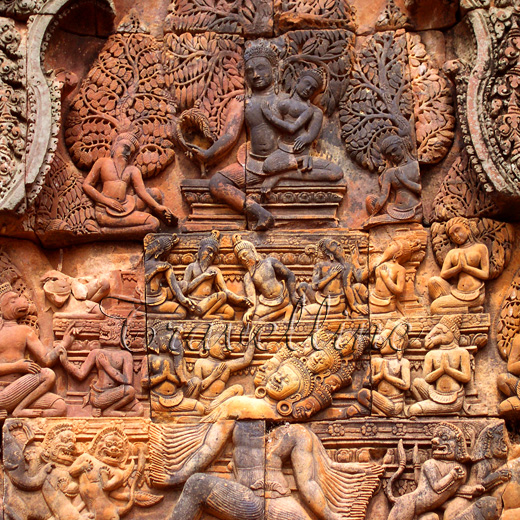 班緹絲麗為一供奉濕婆神Shiva的婆羅摩寺廟(印度教),由當時的真臘國王「闍耶跋摩五世JayavarmanV(968~1001年在位)」興建,由於班緹絲麗採用較為堅實的絳紅色石材,因此在過樑、門楣、窗櫺、拱門、迴廊、石塔上的精緻雕刻並未因時間的流逝而剝離殆盡,今日的觀光客仍然可以欣賞班緹絲麗線條精美的石雕。由於班緹絲麗的雕飾大多以表現女性輕盈的體態為主體,這其中有優雅的仙女、有持花的宮女、有妙曼的舞姿以及當時的生活景況….等引人入勝的精彩藝術傑作,據說當時在修築班緹絲麗時大都由女性來施工,因此一般人均稱其為女皇宮。
