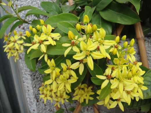 看到梅琪仁格友寫的金英花其實是三星果藤,那張圖顯示的圍籬,花長得真是茂盛。有一次我們一家人到新加坡再渡船至印尼的XX島中的Club med度假,我也看到了開得非常茂盛的三星果藤,相信它一定是熱帶植物。