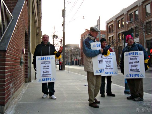 擾攘多時的安省社區學院系統教員罷工行動,终於在昨日(三月七日)爆發了。目前勞、資在談判剛破裂的氣氛下,一時間恐怕不會重回談判桌,政府雖說希望雙方繼續努力,卻只是語言論述,並無實質行動。三方面都欠缺積極作為,學生受害最深,附近的店家,生意也因而大受影嚮。