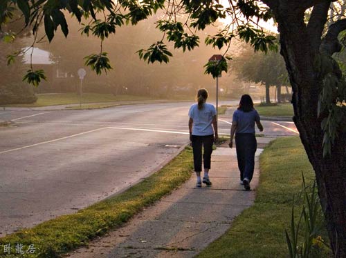 喜歡攝影的朋友都知道,如要拍出一幅合意的照片,環境的配合是一大要素。所謂適時適地,便是成功的主因。早上醒來,便聽到天氣報告,說現時整個城市都籠罩在大霧中,請各駕車人士小心駕駛。興沖沖爬起來,帶着相機上班去,希望在途中能拍下幾幅好的照片。剛出門時碰到一雙母女出來作晨運,巧從門前經過,連忙把相機打開,趁她倆背影仍未消失前,拍下了上面的這一張照片。效果還算可以,只是霧氣不够濃重,顯不出我想要的效果來。到了工作地點附近的公園,連續拍了幾幅,也是因為淡淡的霧氣,無法顯現出我所追求的光束效果。所以一件事的成功與否,除了當事人的充份準備、努力嘗試外,也得周圍環境的配合,一如西諺所說的:At the right place; at the good moment. 才能成事。所謂天時、地利、人和三者互相配合,缺一不行。