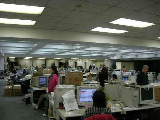 這是報社在這間大辦公室的最後一晚,等大家降完版,搬家工人進來,我們就要搬離這個地方,到地下室去。
