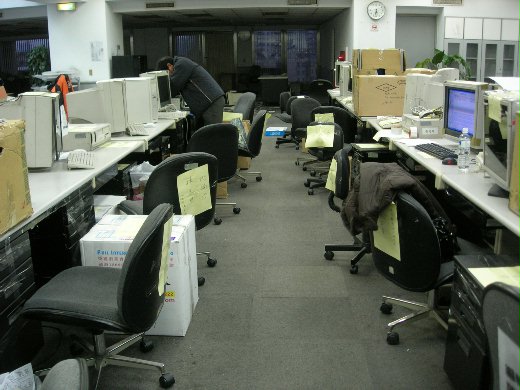 去年十一月,報社就通知大夥辦公室大搬家的消息,還請所委託的設計公司向大家說明新家的空間規劃,本來說好昨天搬,因為施工不及延到今天。這一、兩週,特別是這幾天,不時可以聽到撕膠帶封箱的聲音,還有人私人物品太多來不及整理,只好抽屜拉開東西通通往箱子裡倒。