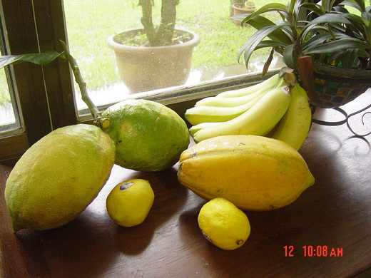 逛鄉下的傳統市場總會有一些新發現,今天又有了新寶貝,賣菜的小販放了四個大如木瓜的檸檬,皮很厚,旁邊的婦人說拿來拜拜用,放軟了再吃,我好奇買了兩個重兩斤半, 六十元, 賣菜的小販說她還賣樹苗,但現在不是種樹的時候,幾年前姐姐從加州帶回了幾個鮮黃色的檸檬,把籽籽種在菜園裏已經有一層樓高,明年買棵大檸檬苗回來接枝,將來結的果實一定很有趣。