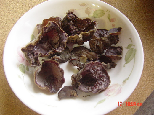 有一天雨後, 不經意的在一株砍下的枯木上發現了長出的木耳,如獲至寶,此後就開始留意每一隻丟棄的枯木,不是每一根都會長,有時會長在草叢裏被砍掉的樹根上,雨天放著不摘幾天就會爛掉,太陽出來又會萎縮乾掉,今天摘了一小盤真是開心 !