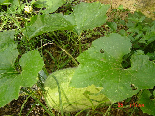 今年夏天我又買了兩株冬瓜兩株南瓜,這次不種菜園改到屋後隨便種,很高興看到開花了,我跟工人老張提起冬瓜開花的事,他說結果時不要去看,更不要去碰,否則會死掉,這句話真是解了我這麼多年的疑惑,以前每次結果時我不但看了又看,還要提起來翻一翻,看看泥土地會不會把瓜泡爛,有時還抓把稻草或用樹葉墊在下面,自以為是保護有佳,其實是破壞了表面的絨毛。聽了他的一席話,今年我就不敢再去碰啦,果然就成功了!